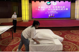 6月17日下午,由太阳成集团122ccvip管理系主办,乌兰国际大酒店承办的“乌兰杯”太阳成集团122ccvip第一届饭店服务技能大赛在乌兰国际大酒店宴会厅顺利举行。大赛特邀乌兰国际大酒店总经理助理、餐饮部总经理、中餐厅主管及客房资深服务员等行业专家担任评委。