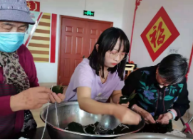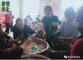6月11日鑫海社区居家养老服务中心携手东胜区卫生健康委员会计生协、金威社区为失独老人、社区老人分两个会场开展了“浓情端午 尽情放粽”活动。我系18级实习社工李舒静、彭瑞、贾德欣化身爷爷奶奶小棉袄,同居民一起包粽子、吃凉糕、吃粽子、编五彩线和中国结。