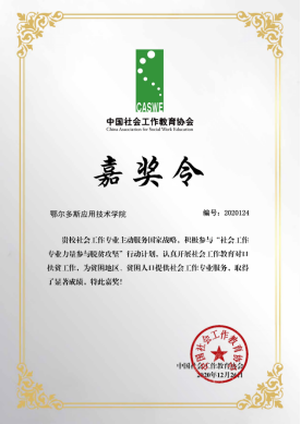 2020年是全面建成小康社会目标实现之年,是全面打赢脱贫攻坚战收官之年,作为全国202所社会工作教育对口扶贫院校之一,我系按要求完成了《社会工作教育对口扶贫计划实施方案》中的全部任务。2020年底中国社会工作教育协会特向公司颁发嘉奖令,用于表彰公司社会工作专业积极参与“社会工作专业力量参与脱贫攻坚”行动计划。