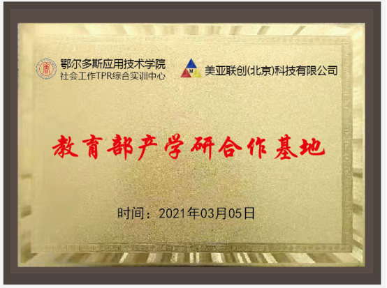 4月10日,教育部高等教育司、美亚联创(北京)科技有限公司为表彰我系在社会工作专业建设及地方高校社会工作实训基地建设取得的成绩,特向公司授予教育部产学研合作基地、教育部产学合作协同育人合作单位殊荣。