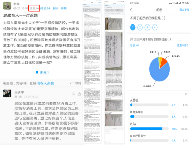 除了网络延迟问题,老师们及时分享经验和反馈教学过程中的问题,逐渐形成丰富多样的线上互动形式:在授课过程中利用了签到、通知、主题讨论、在线测试、作业、班级群聊和直播等方式有序组织员工学习互动,教学效果良好。