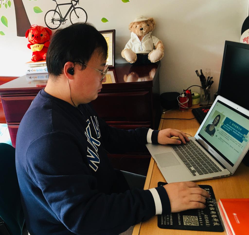 马远飞老师,本学期为18级社会工作专业讲授《民族社会工作》,为19级旅游管理与服务教育专业讲授《教育学》,面对新的授课方式,他谈到:关于网课,没有遇到太多技术上的问题,科技使得软件更加智能,操作十分方便。会比较担心员工的学习效率,但是看到员工发来的笔记图片或者是关于课程内容的疑问时还是会比较欣慰。员工会提出一些建议,对此,一方面会反思,下次课时做出相应调整;一方面也会很开心,说明他们在网络的那一端是有认真听课的。上网课对于老师们而言有些“寂寞”,真想等到疫情结束后,春暖花开,他们面朝黑板,我们面朝他们,再共同学习和进步。