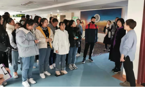 第一站来到了鑫海养老院。王明利部长给我们介绍了该养老院先进的管理服务理念和不断提升专业化的健康养老服务能力和数字化的健康管理综合能力,为实实在在的为每位老人提供精细化、人性化、专业化、标准化的服务。接下来参观各项基础设施,鑫海养老院优秀且完备的基础设施让同学们叹为观止。