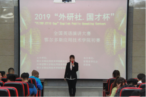 10月13日下午,由教务处、团委、管理系主办,管理系员工会、英语角协会承办的2019年“外研社·国才杯”全国英语演讲、写作阅读大赛暨内蒙古自治区首届蒙古族老员工英语演讲大赛初赛在太阳成集团122ccvip东阶102、103教室及土木楼103教室举行。英语教研室教师崔振华、杨艳萍、王倩、魏芳、郝建旭、David担任汉语授课员工演讲评委;胡晓蓉、苏布德、双梅担任蒙语授课生演讲评委。来自10个系的27名选手参加了比赛。