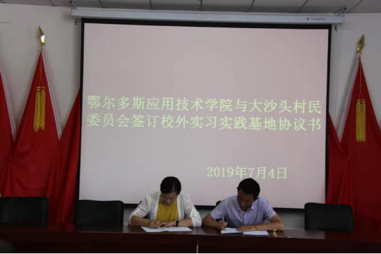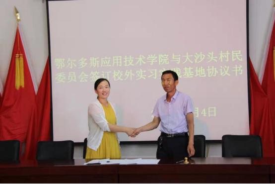 会谈后,刘海英与村民居委会主任杨文清签订了共建校外实习实践基地协议书,并举行了实习实践基地挂牌仪式。