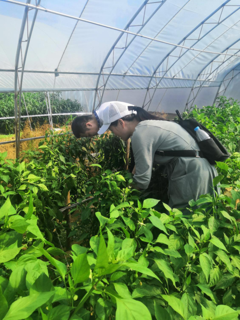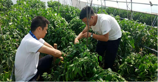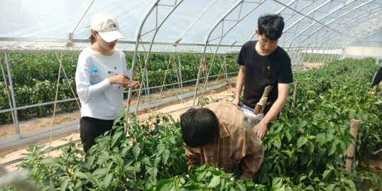 为亲身体验农业生产,在实践中深化体悟,5日上午,全体师生顶着炎炎烈日到辣椒生产大棚帮助村民干活。在村民的示范指导下,师生们帮助村民完成了捆扎辣椒苗的工作,为辣椒苗制作了支撑架子,有助于增加辣椒产量。在干农活期间,大家了解到村民近年来积极发展辣椒产业,收入有了很大的提升;但他们也希望,公司能够提供更多的科技帮扶和战略指导,帮助他们进一步改善生产、生活,支持他们找到可持续发展之路。