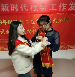 3月29日下午,旅游管理系社会工作专业全体员工在班主任闫璐老师带领下参加了由鄂尔多斯市康巴什区民政局主办、兴旺社区社会服务中心承办的2019年国际社工宣传周系列活动。