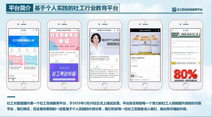 社工识堂作为一个专业提供社工职业考试和能力提升的在线教育服务平台,自2019年5月上线以来,便秉持着“互联网+社会工作专业培训服务”的社会治理创新理念,致力于将社工专业知识、技能和案例进行数字化处理并录制上线。用户不仅可以随时随地通过平台观看录制的课程,还可以参与直播互动,获取最新、最全面的社工专业知识。