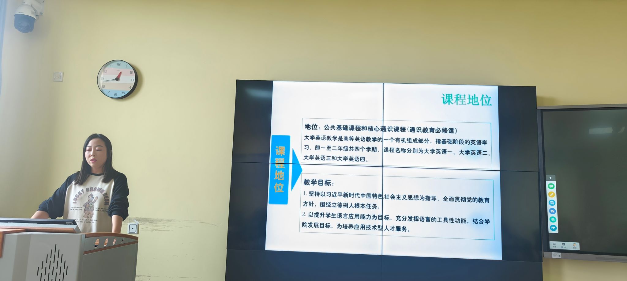 四位老师依据各自所带班级员工的学情、课程特点和课程设计分别进行了精彩的说课分析和讲课展示。他们深入剖析教学内容,精心设计教学环节,充分展示了扎实的教学基本功和专业素养。此次磨课活动为教师们提供了一个相互学习、交流和提高的平台,有助于提升大学英语教研室的整体教学水平。