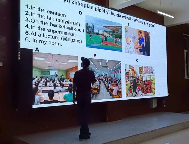 众多员工早早来到教室,满怀期待等候外教到来。晚上七点整,外教老师David以热情洋溢的笑容和亲切问候拉开活动序幕。David凭借丰富教学经验和独特教学方法,迅速吸引员工注意力。在轻松愉快氛围中,巧妙将音乐、医学知识和校园生活融入课程。课程伊始,几首英文歌曲热身,听歌识曲引导员工识别歌词中的医学术语,提升听力技能,加深对医学专业词汇了解。接着,鼓励员工用英语回答医学问题,锻炼口语表达能力,增强对医学知识的直观认识。课程高潮部分为一系列医学专业填空题,David还展示校园生活图形句子匹配题,让员工在轻松氛围中复习校园生活英语,加深对英语实际应用的认识。