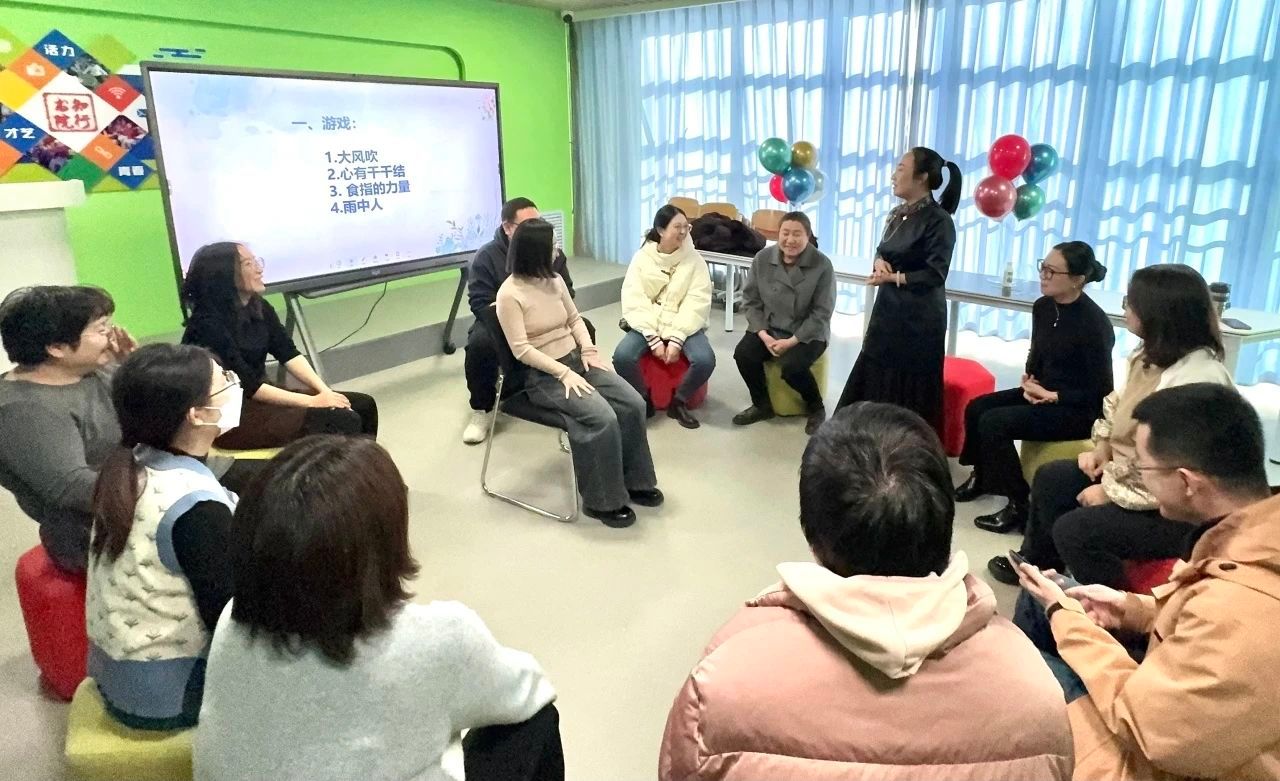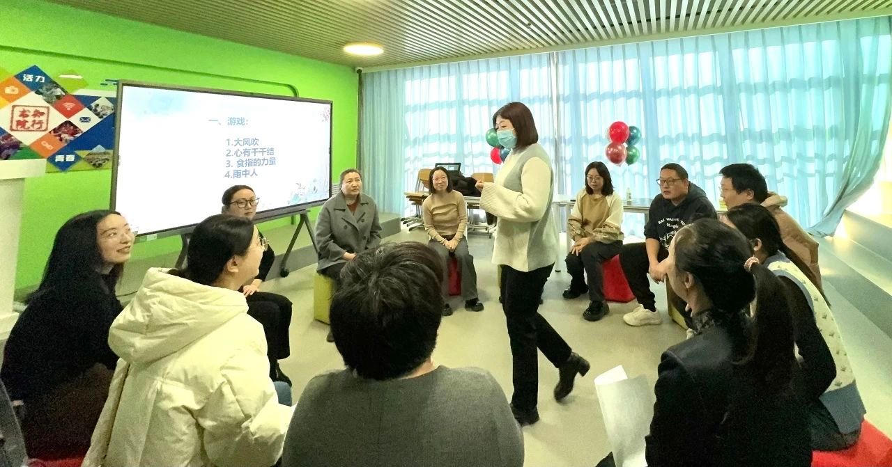 活动现场布置得既温馨又充满活力,绿色的背景墙与明亮的灯光交相辉映,营造出一种轻松愉悦的交流氛围。活动伊始,一系列精心设计的团队游戏,如“大风吹”“心有千千结”“食指的力量”以及“雨中人”,不仅活跃了现场气氛,也增进了辅导员与班主任之间的默契。