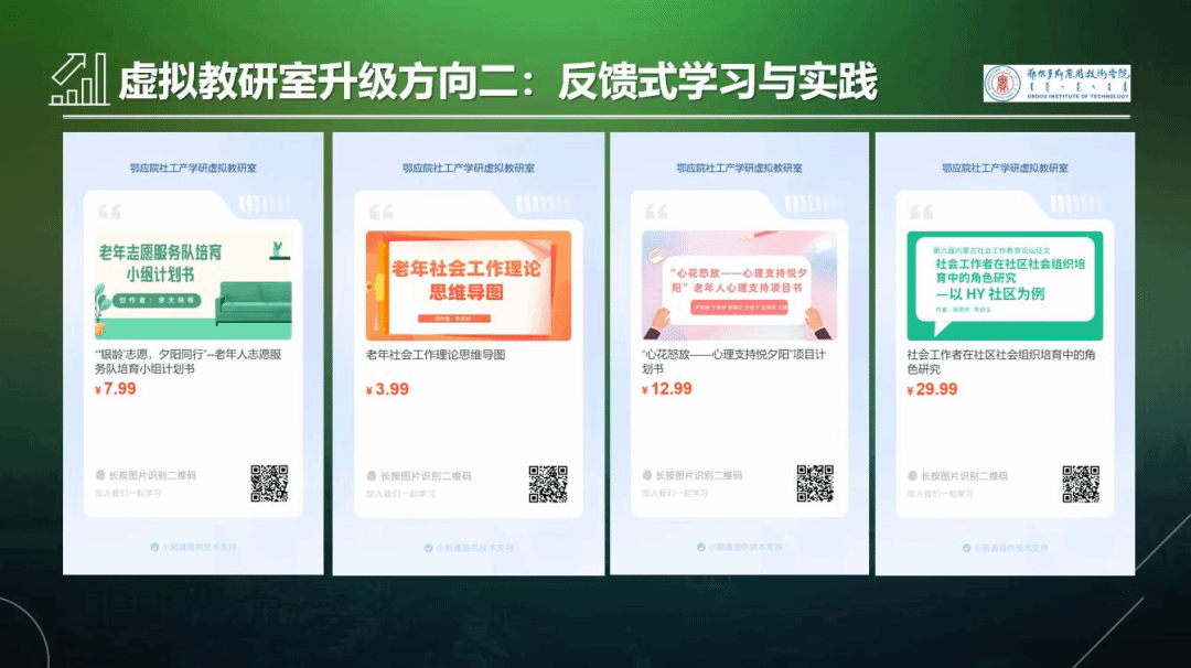 汇报最后,陈兰兰老师还特别提到了下一步的升级改造方向。她表示,虚拟教研室将继续优化平台功能,提升用户体验;同时,还将加强与行业、企业的合作,推动产学研深度融合,为社会工作专业的员工提供更丰富的学习资源和实践渠道。
