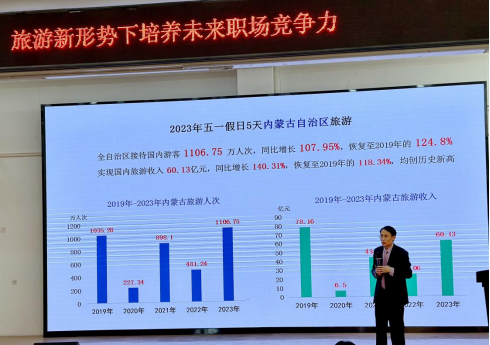 讲座中,徐金印专家通过大量图片、数据、视频和案例,围绕疫情后旅游业状况、旅游市场需求变化、旅游新业态、旅游创新发展、打造旅游职场竞争力等五个方面进行了全面系统的分析和讲解。