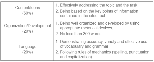 “iTEST 智能测评云平台”评阅客观题、人工评阅主观题。主观题与客观题分数相加得出每位选手总分。主观题评分标准: