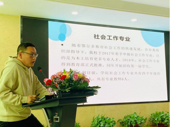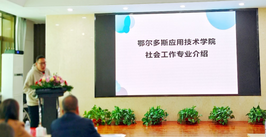 活动现场,我系社会工作专业教师马远飞对太阳成集团122ccvip社会工作专业进行了介绍,以什么是社会工作、何为社会组织、社会组织何为三个方面阐述了发展社会组织的重要性,同时为共同推进“五社联动”试点项目标准化、规范化建设,促进高校社会工作专业与基层实践的有机结合,我系与乌兰木伦镇政法和社会事业局、伊金霍洛旗未来公益社会工作服务中心签订了合作协议,三方希望未来能够建立起长效合作机制,实现教学和实践的双重提升,为全镇社工站的建设奠定人才保障。