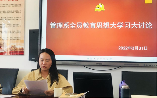 根据学院党委和公司评建办的统一部署,3月24日下午,我系全体教职工围绕习近平教育思想及重要讲话精神;应用型本科转型发展、应用型人才培养;思政课程、课程思政建设;职业教育、职业本科教育;产教融合及校企合作五个专题开展了大学习大讨论活动。力求通过学习讨论活动,提升教育思想,更新教育观念,理清办学思路,明确发展目标,为加速学院的全面发展,迎接学院2023年的本科教学工作合格评估评建工作做好自己的本职工作和应尽义务。
