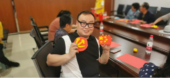 之后所有党员来到了园丁社区党群服务中心,在社工的指导下,大家DIY党徽并学习中国心的折纸。