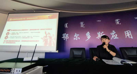 本次讲座主题为“彰显大国优势、铸牢中华民族共同体意识”。朱影老师从“疫情‘大考’彰显中国特色社会主义制度优势”讲起,分别从“彰显坚持党的集中统一领导的制度优势”、“彰显以人民为中心的制度优势”、“彰显坚持全面依法治国的制度优势”、“彰显集中力量办大事的制度优势”、“彰显高效的社会动员的制度优势”五方面向师生展示了在疫情考验中党是如何运用中国特色社会主义制度优势打赢疫情防控的人民战、总体战、阻击战,体现了党带领全国各族人民团结奋战、同舟共济的情境。朱影老师热情的讲解感染了在场的每一个人,赢得了热烈的掌声。
