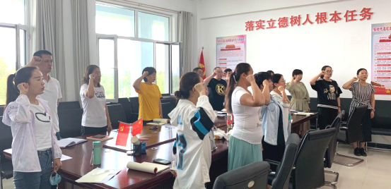 6月29日下午2点30分,全体党员在系党员活动室肃立集合,总支书记崔振华同志领誓,党员们在入党誓词面前再次郑重宣誓,重温入党誓词,牢记入党初心,不断强化使命担当意识。