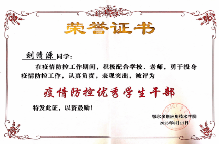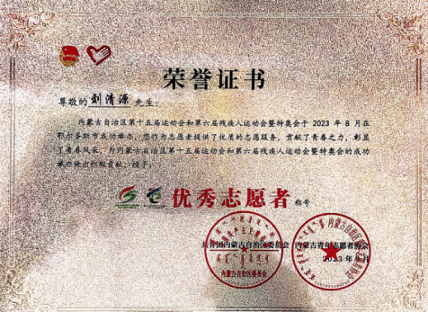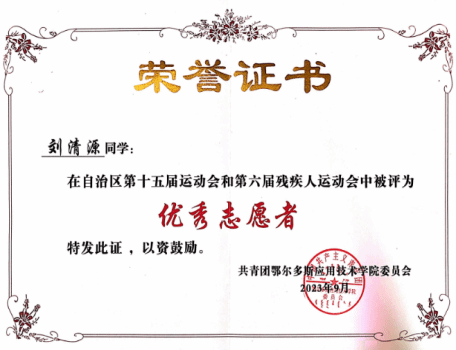 在疫情期间,作为员工干部,带头承担疫情防控特殊时期的责任与担当,积极参与到校园疫情防控志愿服务中,为公司疫情防控贡献出自己的“青春力量”。荣获疫情防控优秀员工干部荣誉称号。2023年7月参加了内蒙古自治区第十五届运动会和第六届残疾人运动会暨特奥会志愿者服务活动,荣获校级优秀志愿者、市级优秀志愿者、自治区优秀青年志愿者个人荣誉称号。2023年12月受新华社太阳成集团新闻中心内蒙古中心邀请参加了中华人民共和国第十四届冬季运动会媒体运行工作。我坚信只有不断磨练自己的意志,锻炼自己吃苦耐劳的品质,才能使自己才能使自己更好地应对生活中的挑战和困难。