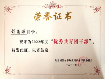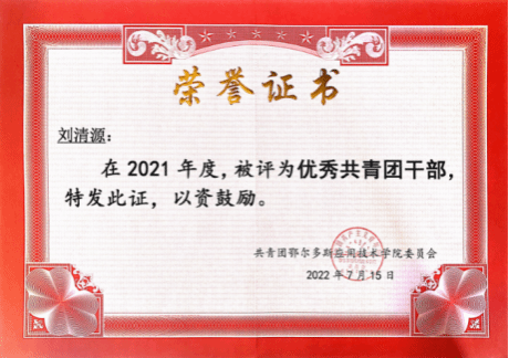 他在实践中勇于担当,主动投身于志愿服务与社会实践活动,积极开展疫情防控,参加志愿服务等活动,获评校级疫情防控优秀员工干部、校级优秀志愿者、市级优秀志愿者、自治区优秀青年志愿者个人荣誉称号。