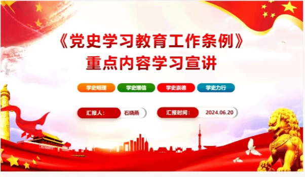首先,党总支组织委员石晓燕开展了题为《党史学习教育工作条例》的主题培训。石晓燕老师深入讲解了党史学习教育工作条例,旨在落实党中央决策部署并加强党性修养。石老师特别强调,党史学习教育不仅是知识的积累,更是精神的传承和价值观的塑造,鼓励员工们要将党史学习与自身的成长发展相结合,树立正确的世界观、人生观和价值观,传承红色基因,担当时代使命。员工们纷纷表示,通过老师的讲解,其对党史学习教育工作条例有了更清晰的认识,明确了自己在党史学习中的方向和目标,也更加坚定了学习党史的决心。