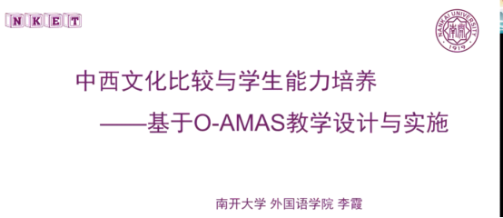 此次讲座由南开大学外国语公司教授、天津市教学团队“南开大学有效教学NKET团队”“国际化人才培养教学团队”带头人李霞主讲。李霞教授从时代背景出发,分析了当前高等人才培养亟需的能力,运用OBE教育理念,倡导从教育目标出发,运用反向教学设计一致性建构的课堂教学设计,分享了团队主创的O-AMAS教学设计与实施。