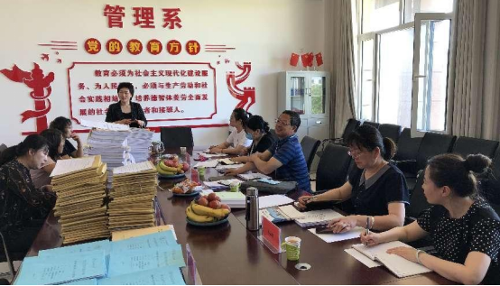我系副主任刘海英简要汇报了我系合格评估重点建设阶段第一时段自查工作情况。专家组围绕课程资料、毕业论文、实习实训等方面进行了详细检查与深入交流,客观指出我系在“整改及重点建设任务”第一时段存在的问题及风险点,并提出切实可行的改进意见和建议。