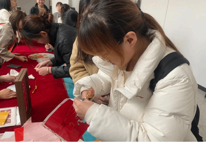 活动紧密结合旅服专业的特点,开设了非遗文化课堂,深入讲解非遗相关知识。同时,针对旅服专业的实际需求,探讨了非遗文化与旅游产业的融合之道,旨在推动非遗文化的旅游开发,为旅游业的可持续发展注入新动力。此外,在非遗体验区,同学们在非遗传承人的悉心指导下,亲身体验了剪纸艺术和景泰蓝掐丝珐琅的非凡魅力,对非物质文化遗产有了更为深刻的认识和了解。