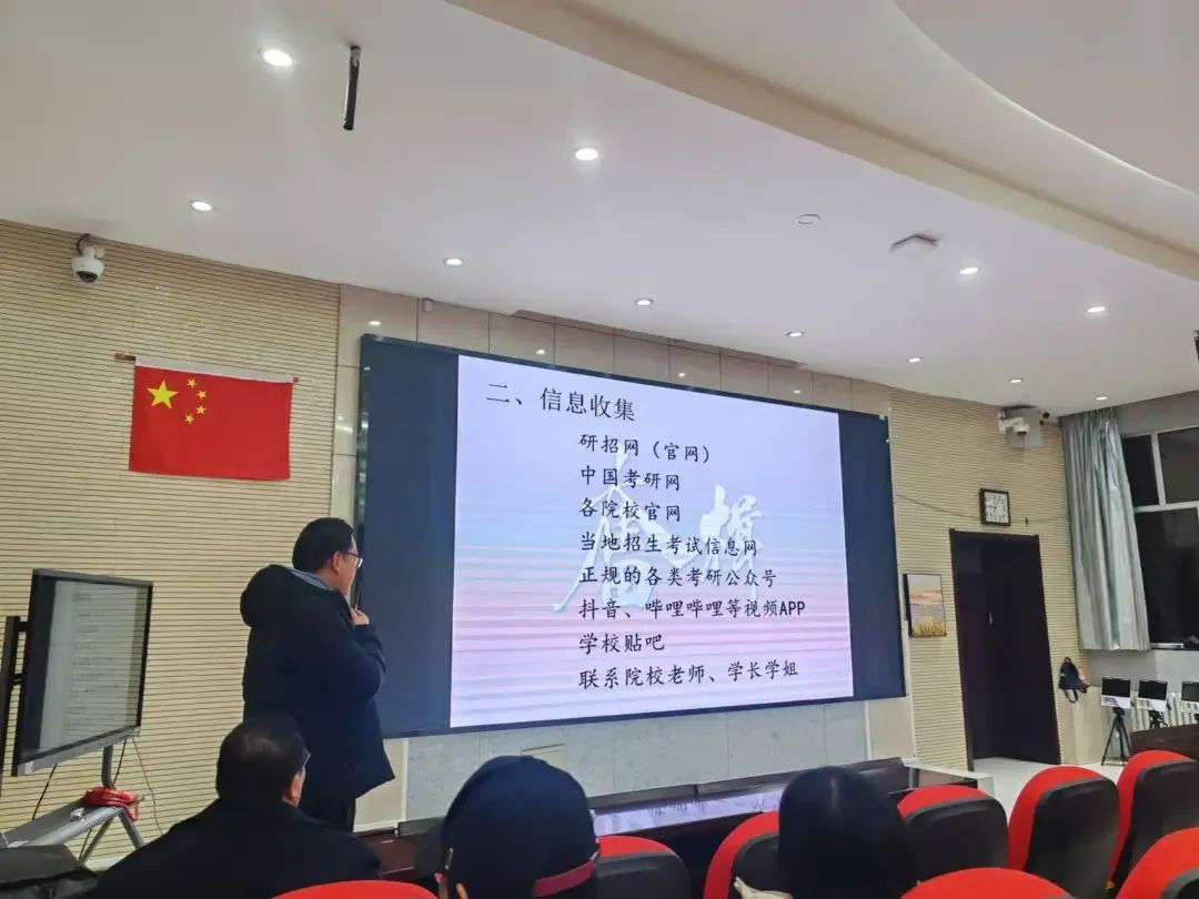 随后,马老师分享了了解、收集考研信息的优质平台,他鼓励同学们要勇于打破信息差的桎梏,以积极主动的姿态尽早确立目标院校,并持之以恒地为之拼搏奋斗。