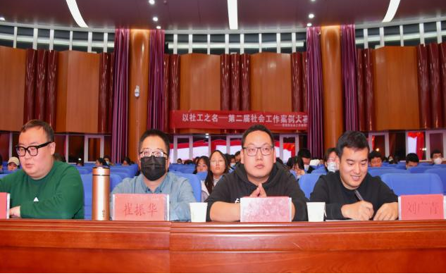莅临本次决赛的嘉宾和评委有:管理系党总支书记崔振华;管理系社会工作教研室负责人呼和;管理系社会工作教研室教师:马远飞、宝如甘、石晓燕、刘广青。此外现场有80余名同学观看了本次比赛。