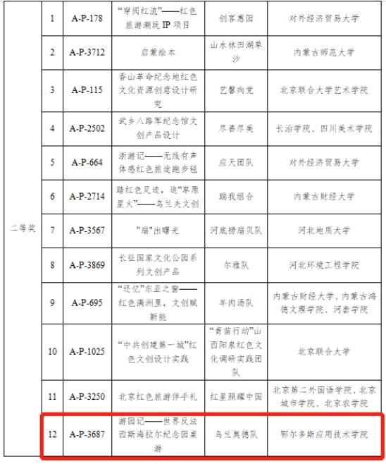 6月30日,第十三届全国老员工红色旅游创意策划大赛获奖结果揭晓,我系旅游管理与服务教育专业员工乔莹、祁铭扬、折星茹荣获“红色旅游文创产品设计”类二等奖。