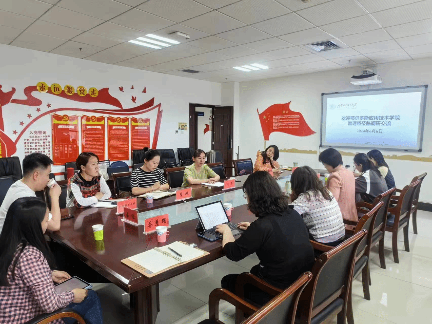 为深化大学英语课程教学改革,提高英语教学水平和教学质量,提升员工英语语言应用能力和人才培养质量,提升教师教学水平,在校领导的大力支持下,系主任刘海英带领管理系英语教研室主任苏布德以及部分教师于2024年6月6日-6月7日赴内蒙古自治区四所本科院校进行进行调研学习,收获颇丰。
