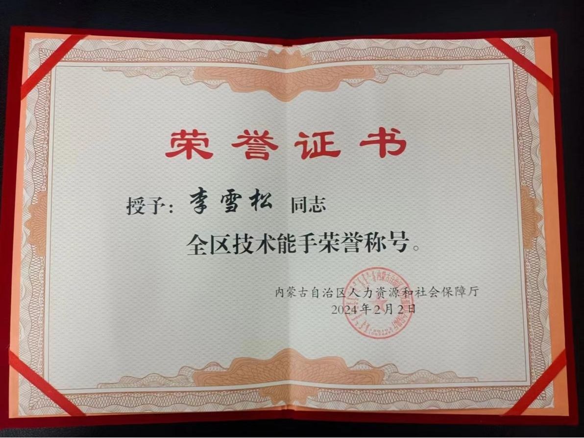 近日,内蒙古自治区人力资源和社会保障厅发布关于授予2023年全区职工职业技能比赛优秀选手“全区技术能手”称号的决定。我系教师李雪松获评“全区技术能手”。
