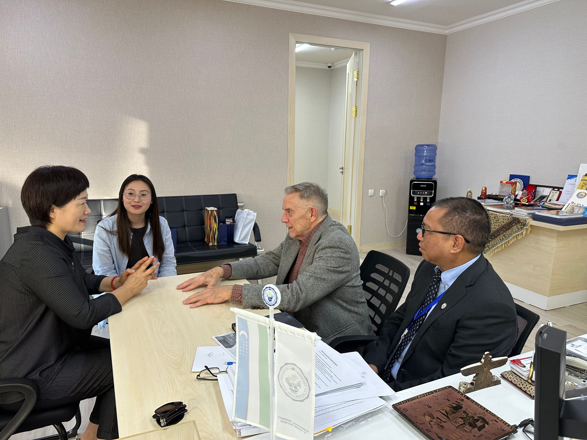 10月2日至7日,管理系系主任刘海英带队访问了乌兹别克斯坦“丝绸之路”国际旅游与文化遗产大学,受到该校第一副董事长迪奥莫汝德·纳斯莫夫(Dilmurod Nasimov)、副董事长约瑟夫·霍夫曼(R. Joseph Hoffmann)和邹统钎(Tongqian Zou)的热情接待。双方围绕草原丝绸之路文化遗产、生态与旅游学术科研及人才培养合作等事宜进行了洽谈。