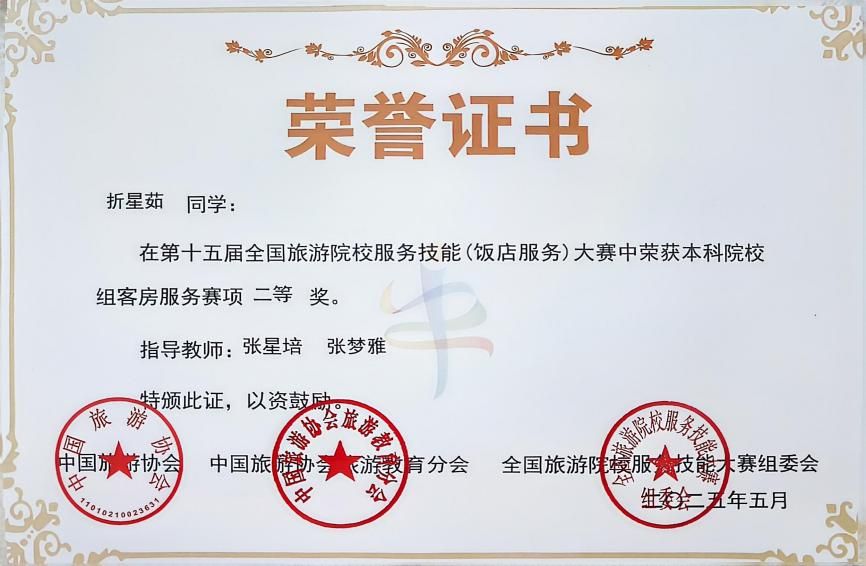 2025年5月15日至17日,由中国旅游协会指导,中国旅游协会旅游教育分会主办,郑州旅游职业公司承办的第十五届全国旅游院校服务技能(饭店服务)大赛在河南郑州举行。公司选派3名选手与来自全国28个省、自治区、直辖市的185所院校参赛队的596名选手同台竞技。