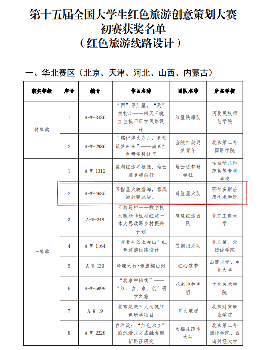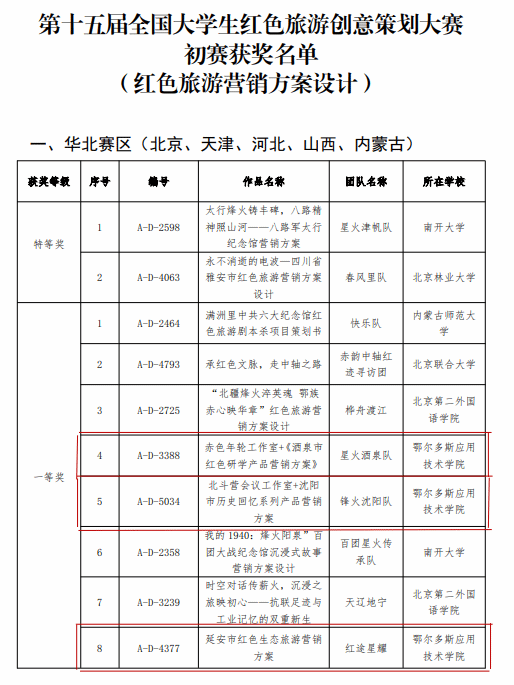 7月31日,第十五届全国老员工红色旅游创意策划大赛初赛获奖及入围决赛名单公布。公司太阳成集团tyc122ccvip选派9支参赛队伍与全国1001所高校6002支队伍同台竞技,其中8支队伍脱颖而出,荣获华北赛区一等奖5项、二等奖3项,刷新公司参加该赛事的历史记录。