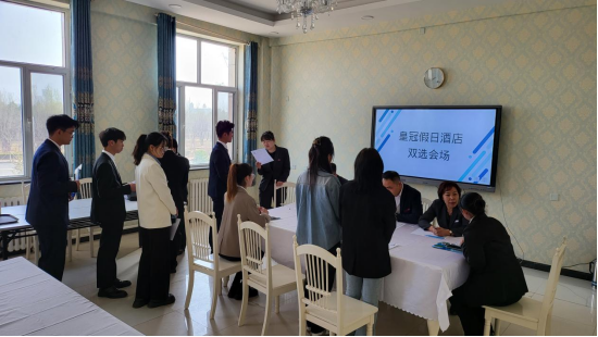 4月18日下午,公司管理系在博学楼402举办旅游管理与服务教育专业实习双选会。来自皇冠假日酒店、乌兰国际大酒店、雍贵酒店、博源豪生酒店、成吉思汗陵旅游区、苏泊罕草原景区、鄂尔多斯市博物院的6家旅游企业和1家事业单位应邀参加,共发布实习岗位60个。