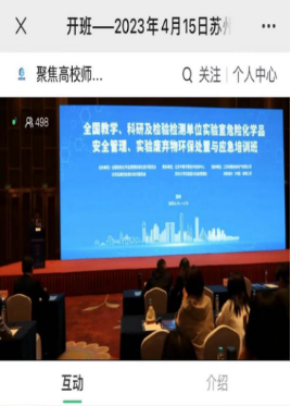 为进一步提高公司整体实验室安全管理水平,强化实验安全意识,提升安全知识技能,教务处于4月15日至17日三天组织各系实验实训中心相关教师参加由全国危险化学品管理标准化技术委员会举办的实验室安全管理线上培训班,艾米、马远飞两位老师参加了此次培训。