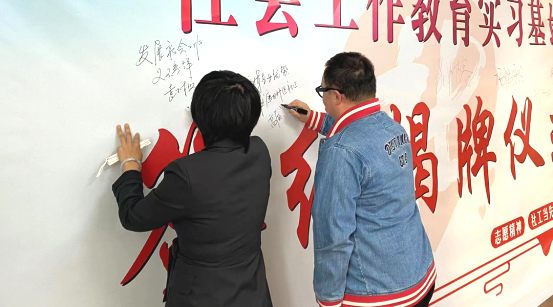 仪式上,双方签订了《政校合作框架协议书》,杨怡然书记介绍了挂牌建立实习基地的目的和计划,李咏梅书记、刘海江局长在推动社会工作高质量发展和社工人才培养方面作了讲话,我系社会工作专业应届毕业生代表祁鑫围绕如何成为一名优秀社工作了典型发言,孙榕副区长为社会工作实习教育基地揭牌。