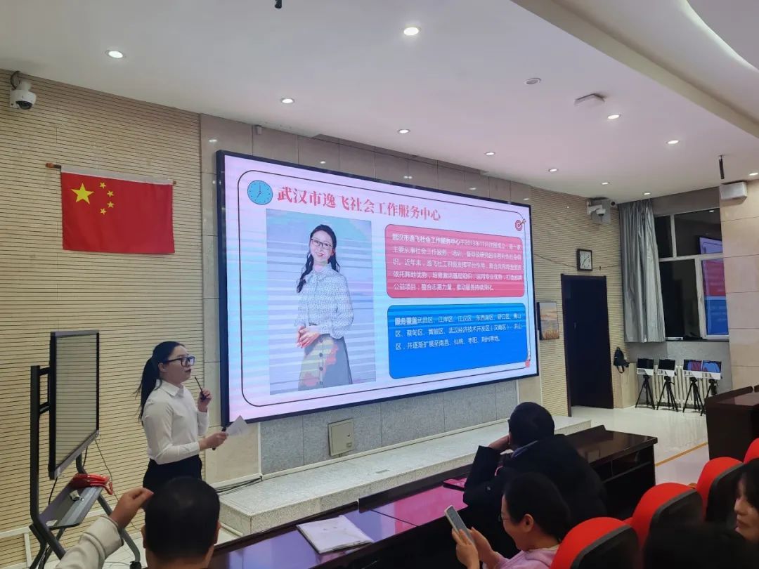 在分享过程中,员工们讲述了刚到实习单位时的紧张与期待,以及面对工作难题时的困惑与突破。员工段妮讲述了自己在实习项目中开展继续教育培训活动,将课堂所学知识灵活运用到实际工作里,最终赢得了实习单位的高度认可,她感慨道:“实习让我真正明白了理论与实践结合的重要性,也更清楚自己的优势与不足了。”吴丽欣讲述了在逸飞社会工作机构实习期间的思考,认为在社会工作实务中要具有良好的沟通能力、扎实的理论基础,能够进行资源整合。她着重讲解了在实习过程中理论与实际相结合的困难的解决办法。
