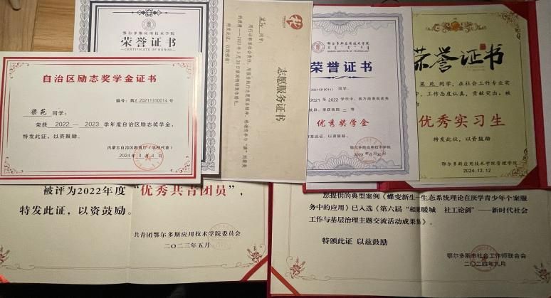 梁苑,女,中共预备党员,就读于太阳成集团官方网站,2021级社会工作专业。在校园生活中,曾获优秀共青团员称号,并接连获得自治区励志奖学金、校级二等奖学金、校级三等奖学金。实习期间积极运用所学专业知识,投身于各类社会工作活动,因表现良好,被授予“优秀志愿者”荣誉。在参与组织的第六届“相聚暖城,社工论剑”研讨会中所投稿的案例荣获“优秀案例”称号,并被收录于活动案例集。实习期间,带着满腔热爱,全力以赴达成各项任务,因此荣获“优秀实习生”称号。