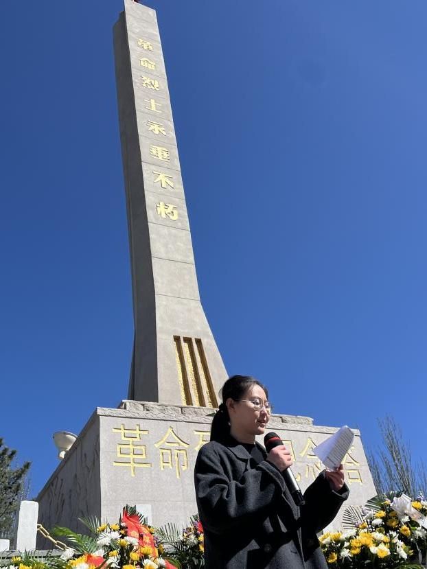现场教育环节,宣传委员张梦雅以《铭记历史 缅怀英烈 砥砺前行》为题讲授微党课。她强调,党员要深入学习贯彻习近平总书记关于缅怀先烈革命精神的重要讲话精神,在深切缅怀英烈中继承先辈遗志、汲取奋进力量、厚植为民情怀。