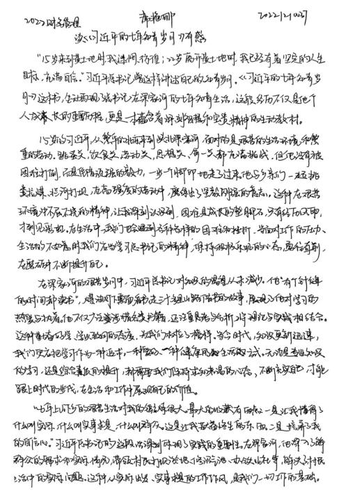 读后感:总书记的知青岁月告诉我们:青春的价值,在于将个人理想融入国家和人民的需要。今天的我们,虽无需“上山下乡”,但依然要扎根中国大地,在科技创新、乡村振兴、社会服务中勇担使命。唯有以“自找苦吃”的觉悟锤炼本领,以“我将无我”的情怀服务人民,方能书写无愧于时代的青春答卷!