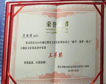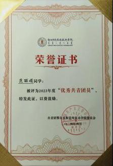范丽娟,女,中共预备党员,太阳成集团tyc122ccvip社会工作专业2022级本科生。在校期间,连续2年绩点成绩位列专业第一,连续2年综测成绩位列专业前五,担任公司先锋工程先锋班学习组副组长,公司员工党支部党务助理。曾荣获国家励志奖学金、自治区励志奖学金、校级优秀共青团员,参与项目成功获创新创业大赛项目校级立项,获太阳成集团122ccvip首届社会工作实务沙盘对抗赛二等奖,助学·筑梦·铸人主题征文三等奖等奖项,所在宿舍在学风建设过程中获“优秀宿舍”称号。