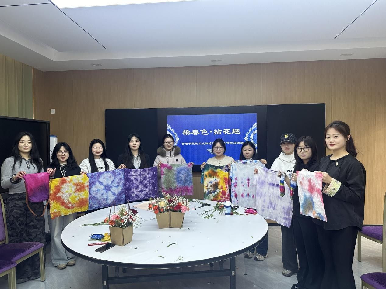 活动现场,插花与扎染同步进行。在插花环节,老师们化身“花艺仙子”,在专业花艺师的悉心指导下,老师们充分发挥自己的创造力,精心搭配香槟、康乃馨等花材,创作出一件件独具匠心的花艺作品,每一束鲜花都蕴含着她们对美好生活的向往和热爱;