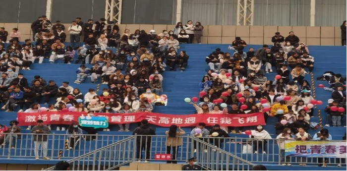 管理系方阵举着“经天纬地,管理最强”的条幅,口中喊着“激扬青春,任我管理,天高地迥,任我飞翔”的口号,充分展现了管理系学子团结进取、昂扬向上的精神风貌。方阵入场后,全体人员举行升国旗仪式,五星红旗在全场齐声高唱国歌声中冉冉升起,运动会正式拉开帷幕。