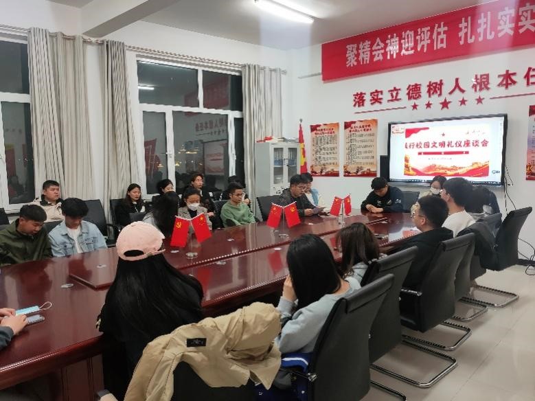 最后辅导员张雪璐对上述观点进行总结,强调校园、宿舍、课堂是我们第二个成长的家,对我们的世界观、人生观、价值观的形成都有潜移默化的影响,因此,懂文明、讲文明、传播文明与我们息息相关。在校园中,作为老员工不仅仅要学习知识,更要注重校园文明礼仪,做到尊师重道、遵守校规、珍惜粮食、礼让他人、注意卫生等文明行为,各班级员工干部要起到带头模范作用,上传下达,带动大家从现在做起、从小事做起,建设我们的校园文明之家。