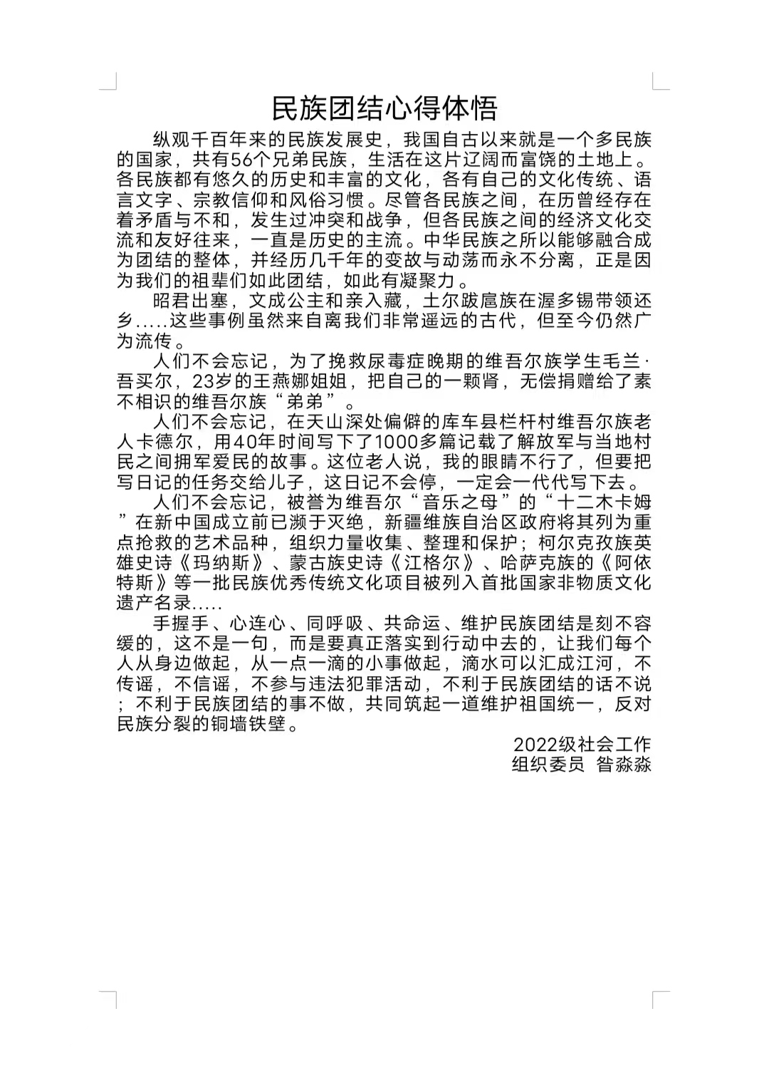 为铸牢同学们中华民族共同体的意识,我系于2023年9月20日组织全体员工,观看“习近平总书记讲过的民族团结进步故事”