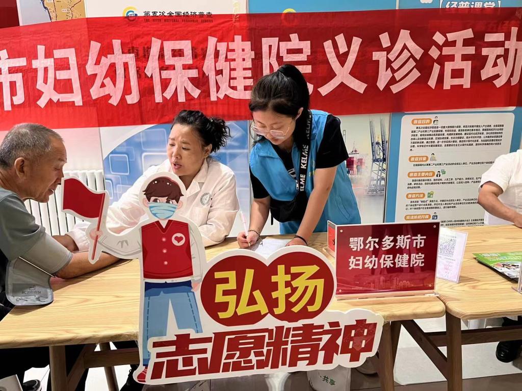 第四组:由于老年人行动不便,就医很不方便,所以康新社区特邀鄂尔多斯市妇幼保健院医生,开展义诊、发放健康知识宣传资料,为老年人送上一份温暖而健康的金秋礼物,同时我们的志愿者从预防保健措施等方面进行详细解说。